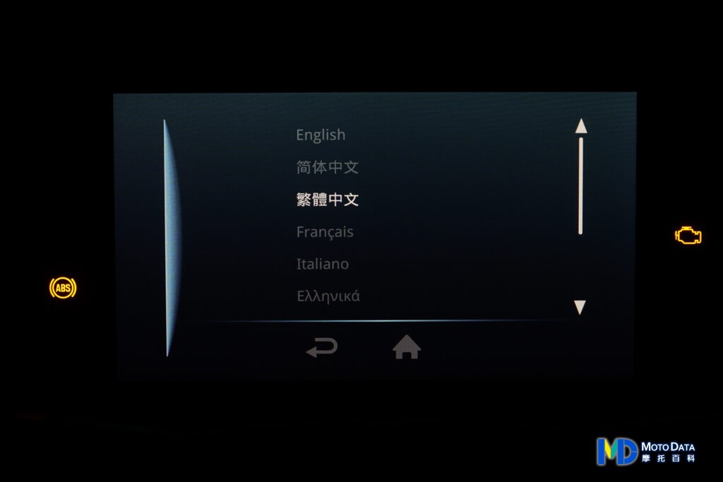 至於設定的功能介面,裡面有包含重設里程資訊的機能與設定目錄,裡面包含多個儀錶板功能可進行調整,包含風格有三種風格、語言有多種語言、單位可選公制英制、時間調整、時間格式調整、日間與夜間螢幕亮度設定、手機/耳機藍牙連接、胎壓偵測配對、軟體版本以及恢復原廠設定。