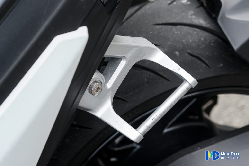 至於側箱的拆裝,只能說三陽這次設計的機構真的非常巧妙,只需要透過坐墊下的單側鎖定機構,壓下鎖定機構後順時針旋轉上彈出後解除鎖定,就可以手提把手將側箱提起;反之則是將單側鎖定機構先往下壓並逆時針鎖定固定後,就可以看到前方固定位置以及後方的固定鎖扣都已伸出,這時再將側箱下方承重接合點先對準鋁合金支架,接著在把上方的前方與後方固定點下向壓,即可固定完成側箱,記得壓上後一定要聽到”喀”聲並試著手提看看不會鬆脫,才是完整的固定完成;倘若不想安裝側箱騎乘,原廠也提供單側兩片共四片的飾蓋,可用於安裝在側箱固定點,這樣既可延長鎖扣壽命,也能讓外觀看起來更整潔。