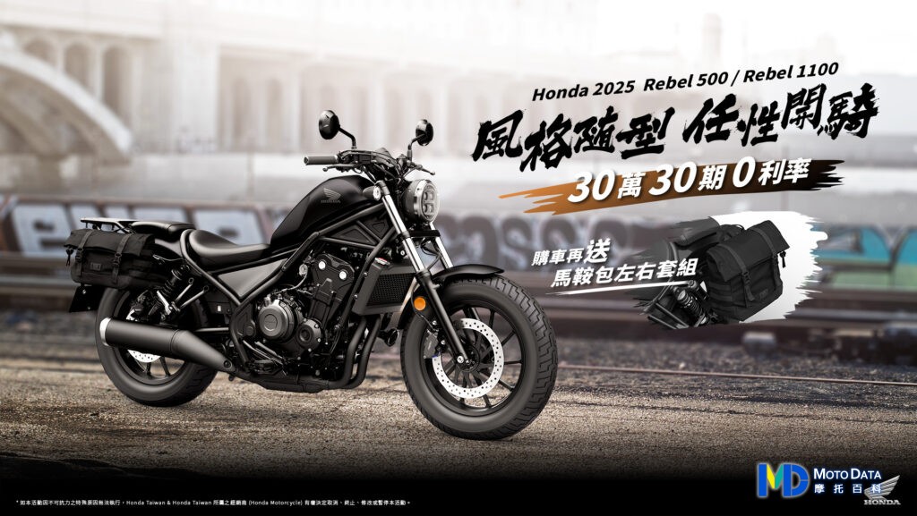 Rebel500、Rebel 1100 享30萬 30期 0利率 購車再送馬鞍包左右套組