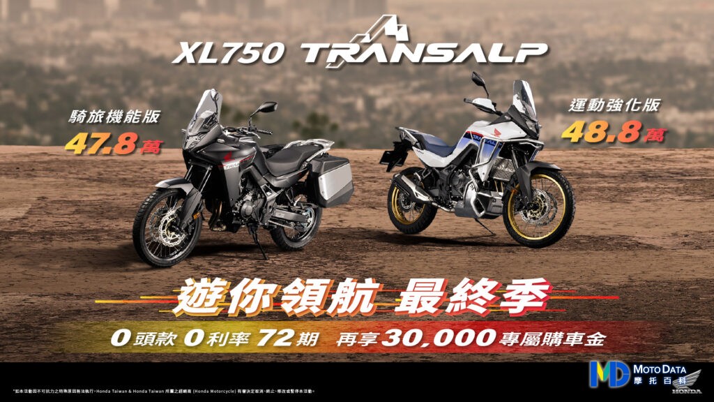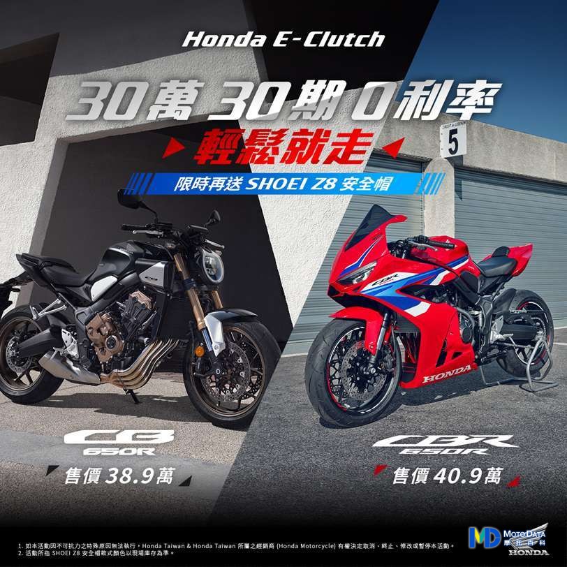 本月特別推出 「風格隨行 任性開騎」 專案,凡訂購最具個性的Rebel500、Rebel 1100,即可享有 30萬30期零利率,購車再送馬鞍包左右套組,完美融合率性風格與裝載便利性。針對全能冒險家XL750 Transalp 推出「遊你領航 最終季」方案,運動強化版(含水箱防護網、前防護桿、支架、引擎防護桿、引擎下護板、護弓支架、快速換檔套件 價值:60,202) 運動化的外觀與配備,熱血風格全面進化,售價:488,000 ; 騎旅機能版(含專屬側箱組、專用支架、鋁合金面板 價值:45,860)再享72期,零頭款、零利率之外,再送三萬元購車金,搭載科技新潮流的CB650R E-Clutch以及CBR650R E-Clutch,享30萬、30期 0利率優惠,限時再送Shoei Z-8安全帽,為所有騎士帶來前所未有的輕鬆駕馭體驗,再針對多款人氣機種提供超值的「通通零利率 追風零阻力」專案,全車系指定車款最高享72期、0頭款、0利率 再送3萬專屬購車金,不論是日常通勤、假日出遊或冒險壯遊,都能無壓力且無負擔入主Honda人氣二輪機種,享受專屬於騎士的馳騁自由。