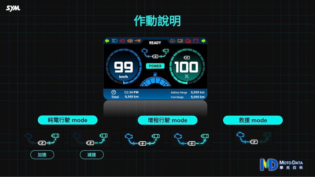 SYM 三陽 EREV 增程式電動車概念說明重點: