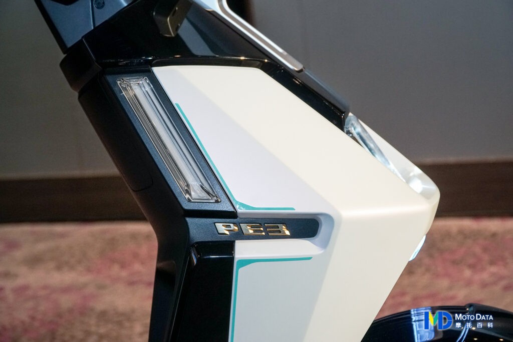 至於細節上來說,就如同前面提到,三陽是以 Woo115 + E-Woo 的開發經驗整合打造 PE3,目標是要打造出一輛有電動車的安靜騎乘體驗,以及燃油車便利性的車款,PE3 整體配置上其實看起來也的確像是燃油車與電動車的結合,既有電動車的科技感外型,又有燃油車的排氣管與車體幾何等。