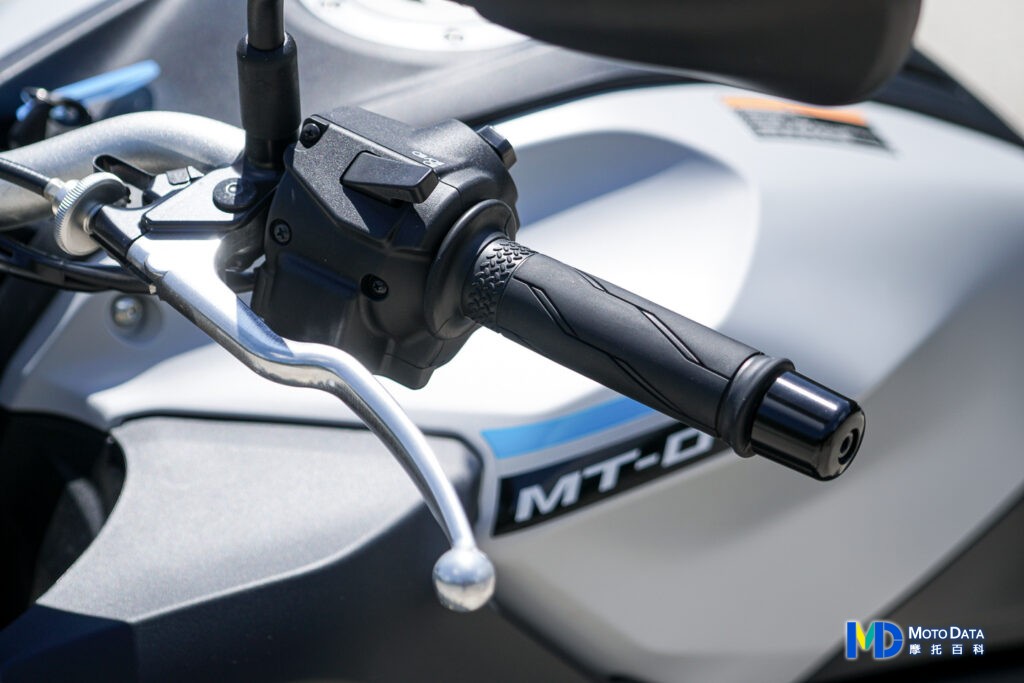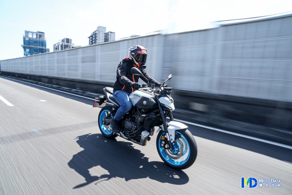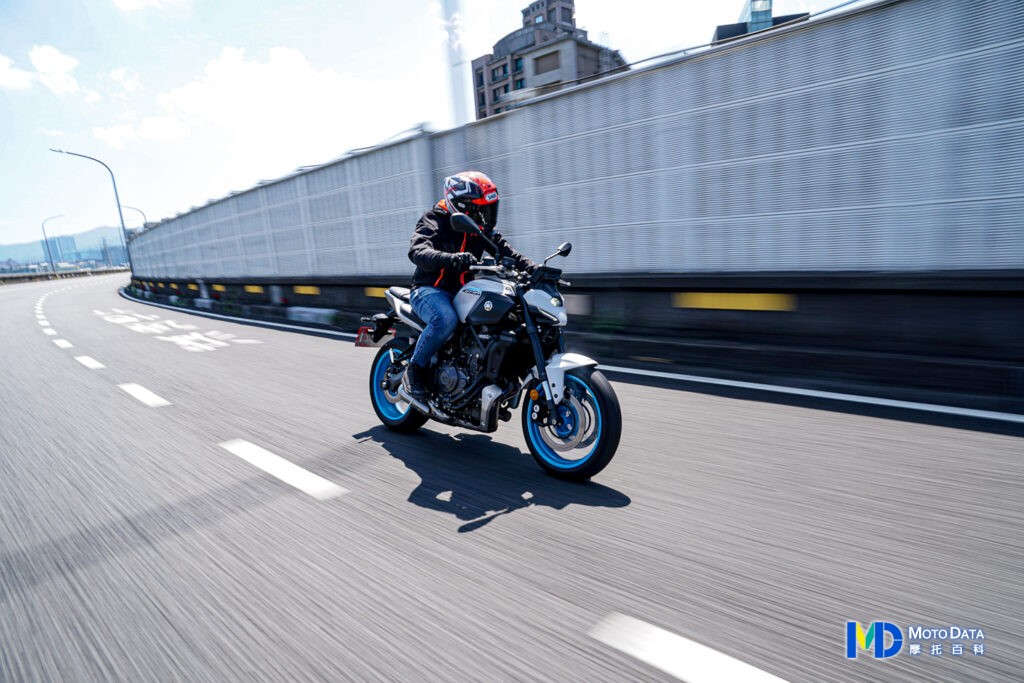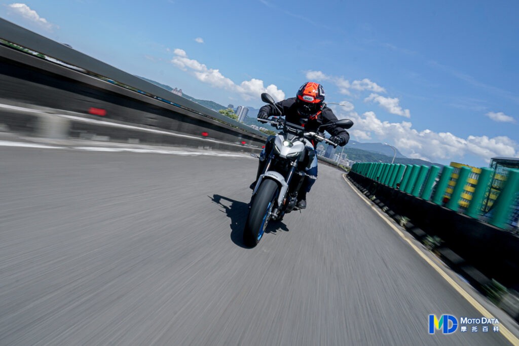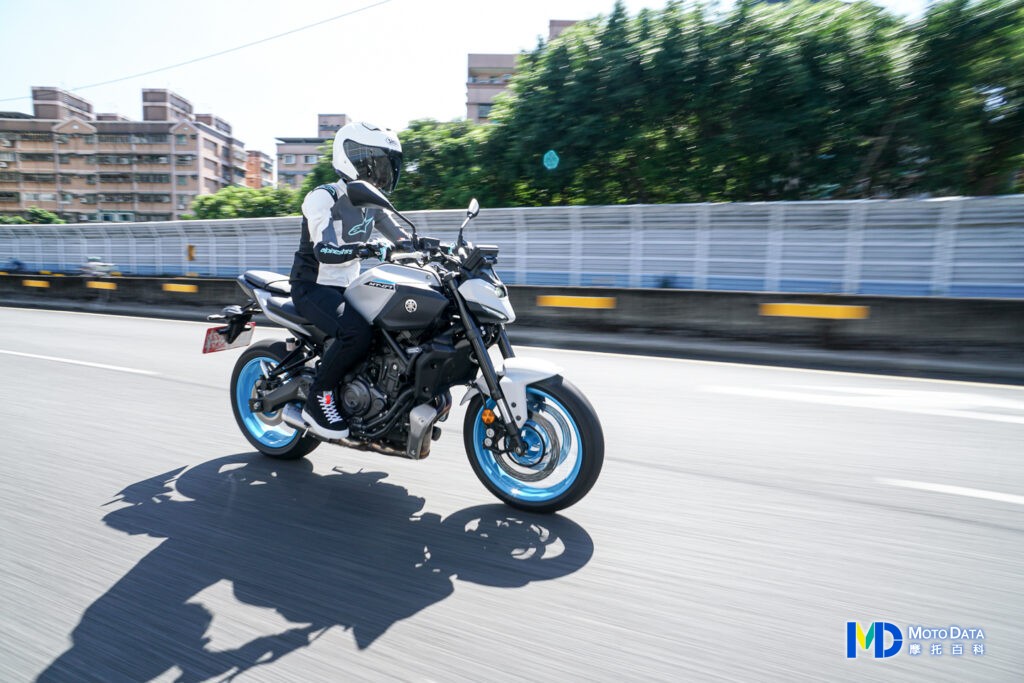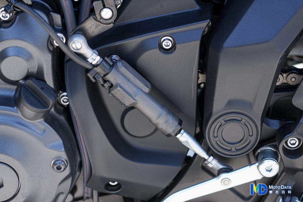 另外就是這次試駕的 MT-07 是有選配快排系統,只要起步後油門開度以及轉速、時速與檔位允許,是可以不拉動離合器進行進檔,並且因為這次 MT-07 使用的是電子節流閥,所以不僅有進檔機能,還有無離合退檔機能,油門收回後隨著煞車制動讓時速下降,腳可以直接踩下打檔桿進行退檔,行車電腦會做 Auto-Blipping 自動退檔補油,讓引擎轉速提高來與對應的時速銜接,減輕降檔退檔時的檔煞衝擊感,激進一點的操駕情況時,我們嘗試過連續兩檔的操作,車輛算是聽話滑順。
