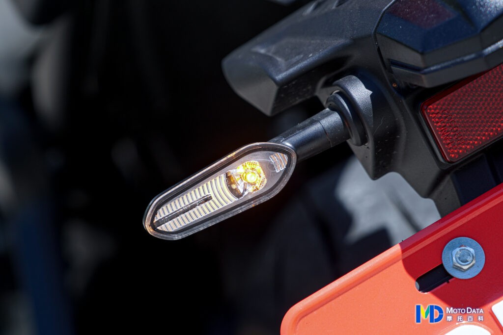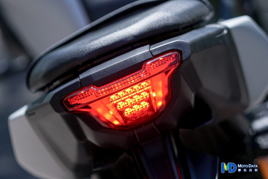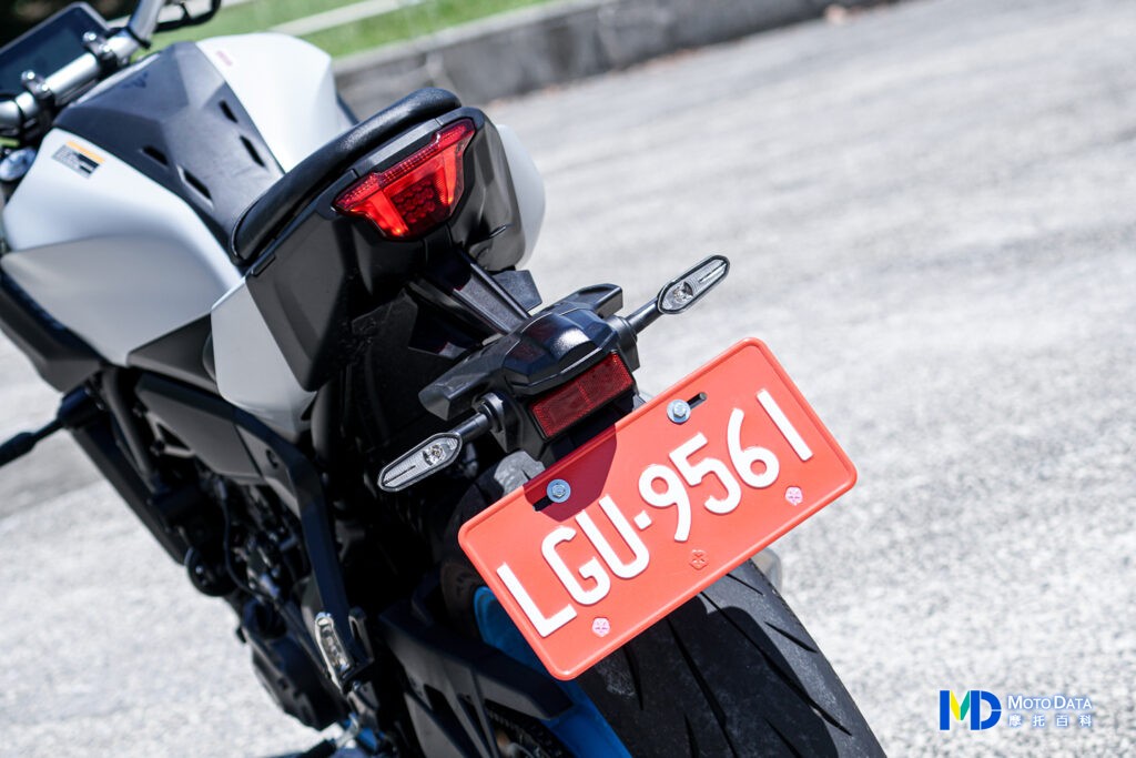 車尾使用的是延伸牌照架,尾燈在車尾殼中,所以若改短牌架不需要擔心尾燈的位置安放,尾燈組一樣是 LED 的尾燈搭配 LED 煞車燈組,並且兩側 LED 方向燈安裝於牌架上,但就如同前面所說,全車主燈具多為 LED 的同時,僅有牌照架為鹵素燈泡,若能全車都是 LED 燈具組,應該更符合消費者的期待。