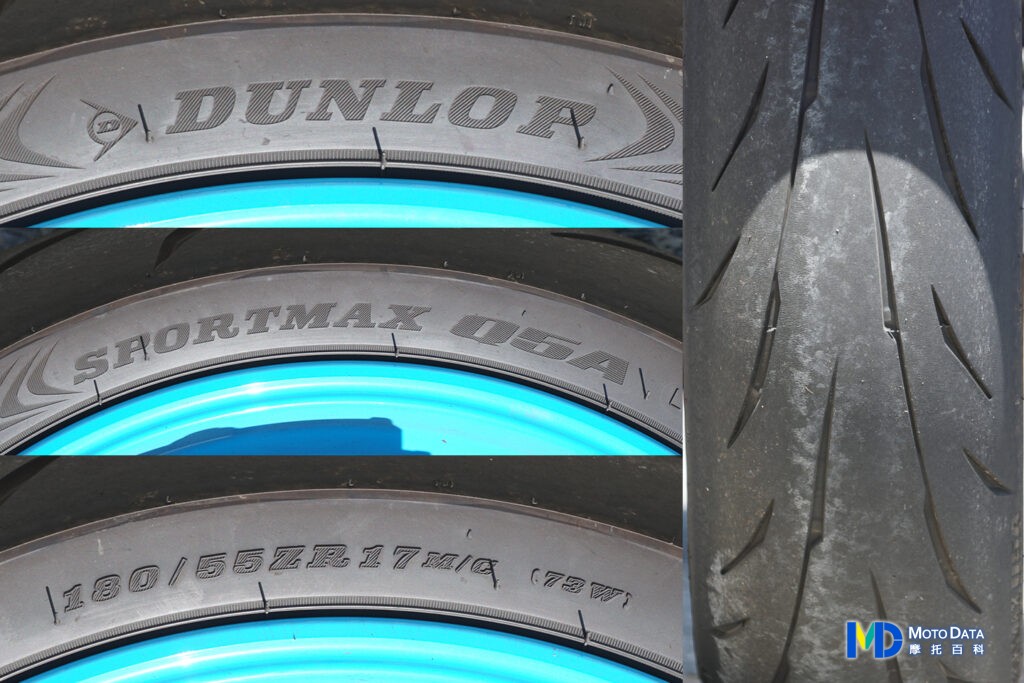 至於第四代的 MT-07 原廠配胎,改為前後都是使用 DUNLOP 的 SPORTMAX Q5A 系列,前胎規格為 120/70ZR17 M/C 58W,後輪規格則是 180/55ZR17 M/C 73W,胎紋都可以參考右側,這是 DUNLOP 新出的運動街道胎,可以很好的對應 MT-07 目前的動力以及車輛設定。