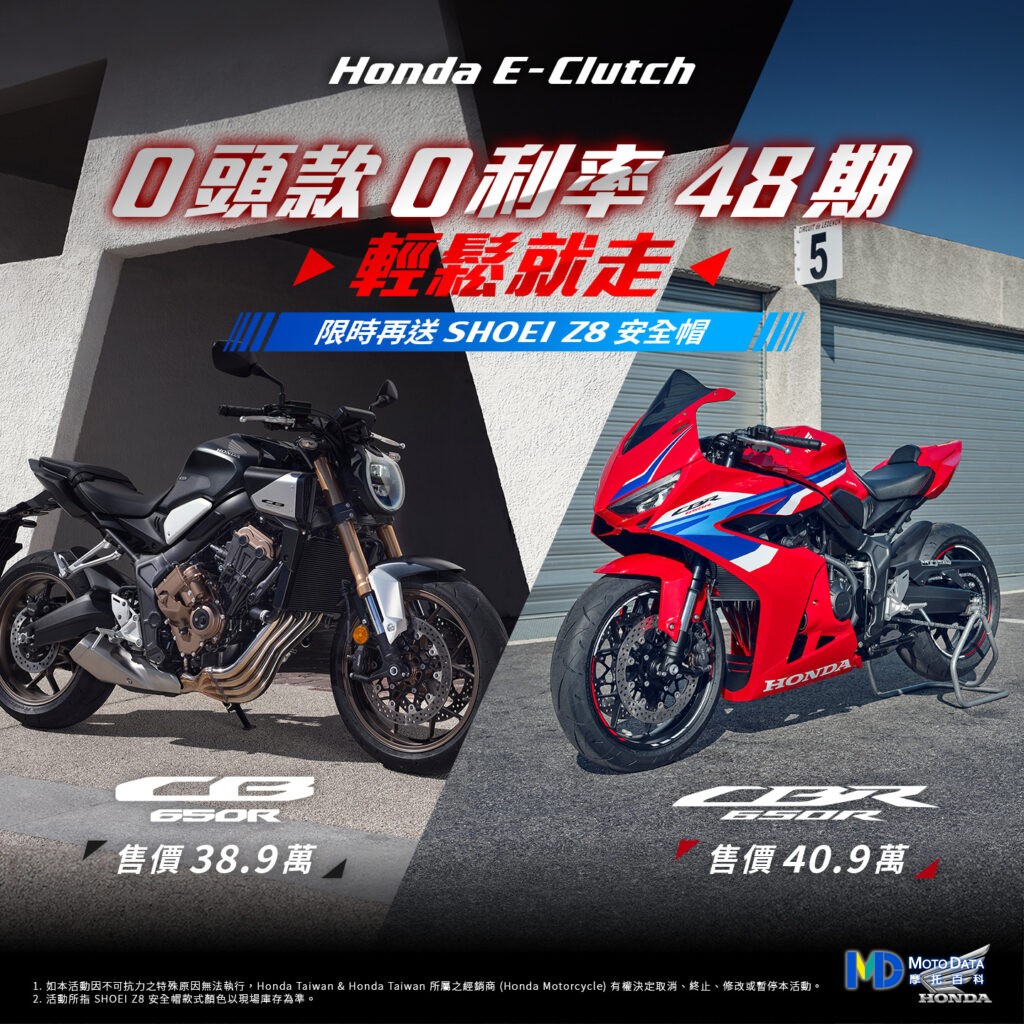訂購CB650R E-Clutch、CBR650R E-Clutch享0頭款 48期 0利率