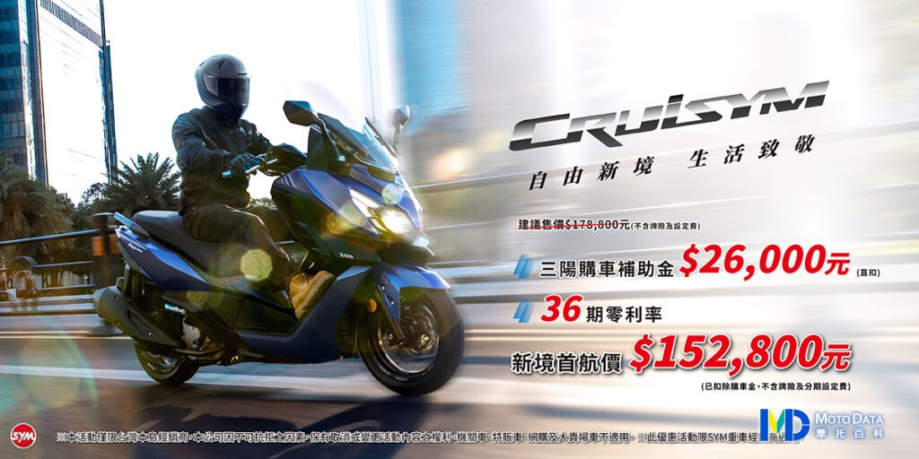 【CRUISYM 預購優惠】CRUISYM建議售價:$178,800元(不含牌險及設定費)
