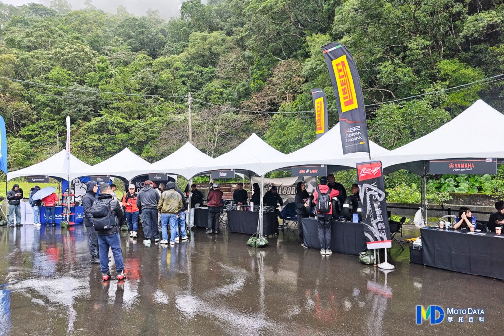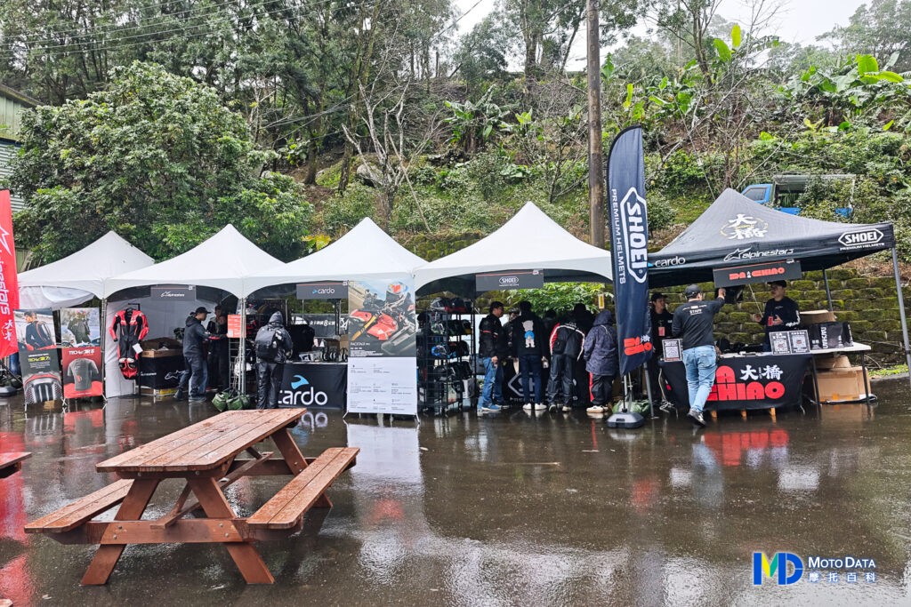 本次大橋舉辦的 65 周年園遊會活動,選在北宜公路上剛開幕的 GUGU Cafe,現場也能看到非常吸引目光的 Alpinestars 充氣拱門,車友們從這邊騎進會場後,就可以在大橋的安排之下,在模型屋中進行與愛車的合照留念,而從照片中不難看出,當日的雨勢並不小,但這並不減車友們參與的熱情,許多人依然是不畏風雨前來參加。