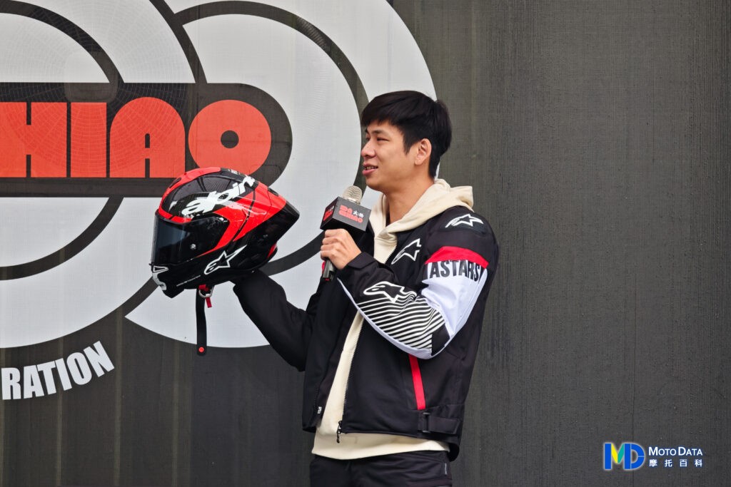 接著則是由小三與小老婆汽機車資訊網的創辦人 Singer 來介紹 Alpinestars 的人身部品穿搭經驗,還有 cardo 藍牙耳機的使用經驗分享等,可以看到 Singer 身上的穿著都是由 Alpinestars 推出的產品,更重要的是 Singer 活動當日還是騎乘愛車 GOLDWING 前來,不僅不畏風雨,更可見 Alpinestars 部品若有防水機能的信賴度之高;另外小三也與 MotoGP 線上講評「耶S哥哥」一起分享 Alpinestars 全新頂級賽事安全帽 S-R10 的配戴經驗,耶 S 哥哥表示 S-R10 的安全帽鏡片角度之廣,同樣的賽道同樣的彎道,S-R10 看的就是多一點,這點讓他最印象深刻,當然通風性與穩定性也不在話下,近期我們也會帶來 S-R10 的開箱報導,有興趣可持續鎖定我們的介紹。