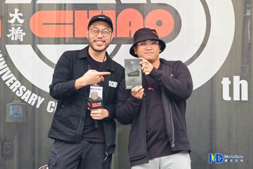 最後,大家最期待的大獎抽獎活動即將展開,只要在大橋說明期間有前往消費,就可得到抽獎券,最終於園遊會中投入抽獎箱,得獎者也要留在現場,就可以在唱名後上台領獎,獎項不僅有大橋提供的 cardo Packtalk Pro 藍牙耳機、Alpinestars 腰包、Alpinestars 布帽、Alpinestars 背包、Alpinestars T-Shirt 之外,還有贊助商提供的 Dunlop 後背包、Mr.Dryer 裝備烘乾機、Orange TPMS 胎壓偵測器、YAMAHA 周邊部品、KONQUEROR 機能衣物、JP464 部品及 Full Bore 飛寶機油禮包。