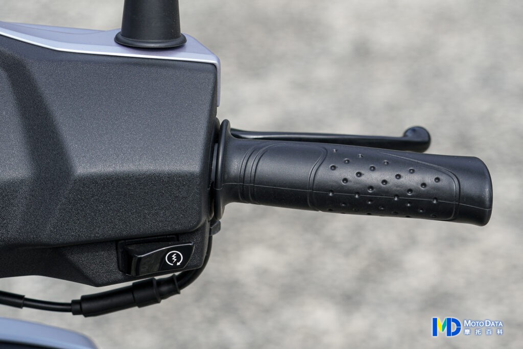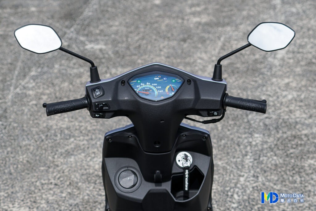 騎乘視角可以看到樸實的把手以及儀錶板風格,中央儀錶板採用全指針樣式,左邊為時速,時速內還有總里程計,右邊則是油量錶,上方燈號為引擎故障燈、遠燈提示以及左右分離的方向燈提示,這樣就不會搞不清楚現在打得到底是左邊還是右邊方向燈,而把手方面左把手與開關有近燈/遠燈切換、方向燈以及喇叭,右邊則是僅有電啟動鍵。