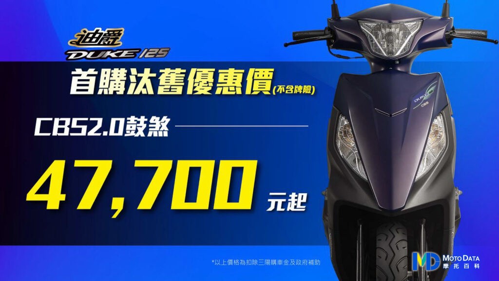 • 2026 迪爵 Duke 125 前後鼓煞版 建議售價 NT$ 78,500 元 ( 含牌險 )