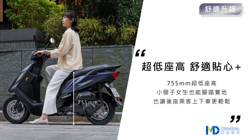 • 坐墊長度提升至 689mm,坐墊高度降低至 755mm,碟盤加大至 190mm
