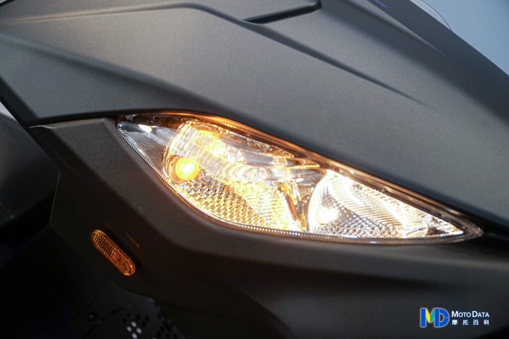 2026 迪爵 125 的外型經過小幅度的調整,最明顯的就是龍頭造型變得比較細緻,車頭也比較小一點,前斜板則是一樣維持中央烤漆的大盾牌,搭配兩側防刮材質的 H 殼,大燈組為 HS1 35/35W 鹵素燈泡,兩側方向燈為 1156 鹵素方向燈,搭配下方的 T10 鹵素燈泡定位燈組,全車燈系都是屬於維修比較便宜的鹵素燈泡。