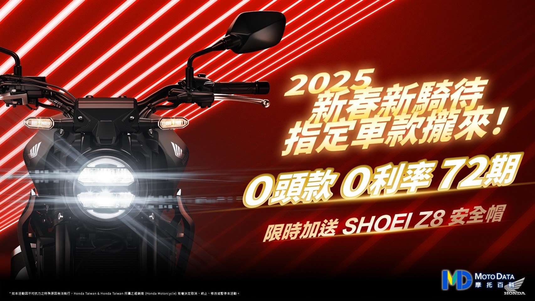 【官方新聞稿】Honda Motorcycle 指定車款72期零頭款、零利率、限時加送Shoei Z-8安全帽